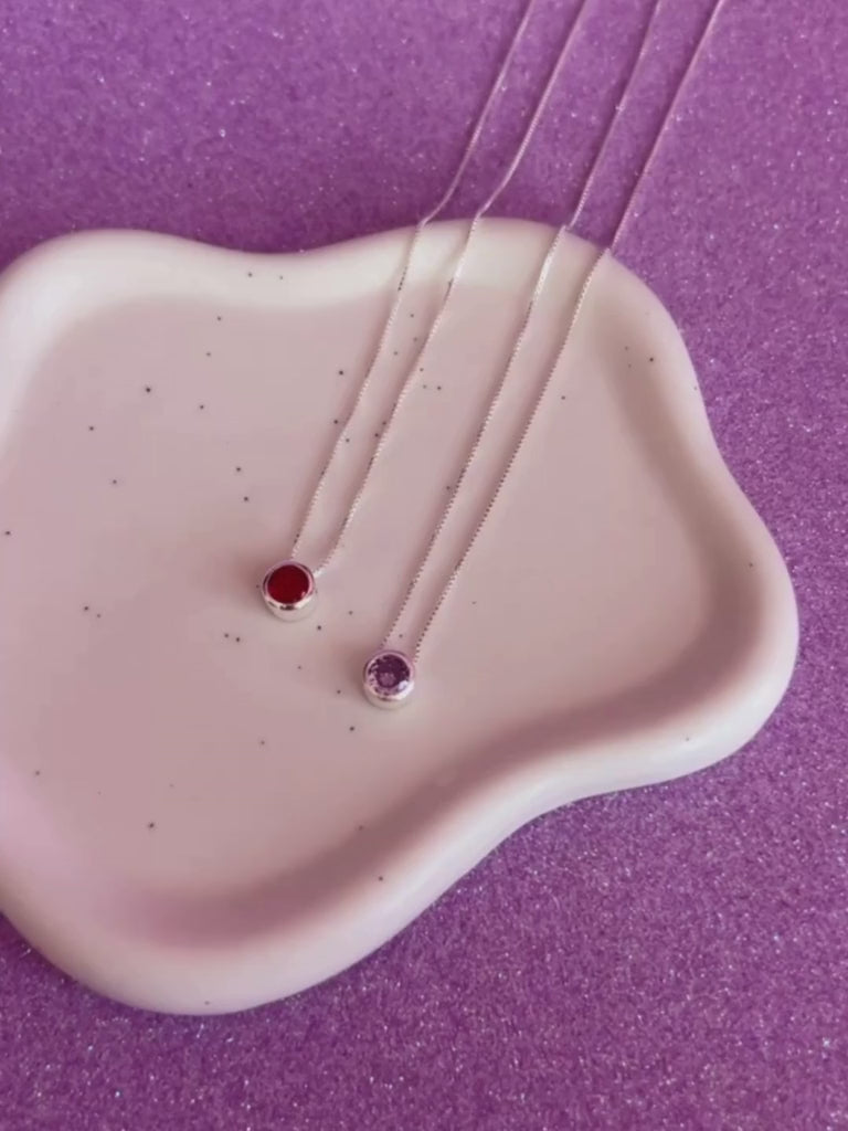 Colgante de Plata ley 925 con circones color rojo y morado + cadena veneciana de 45cm.